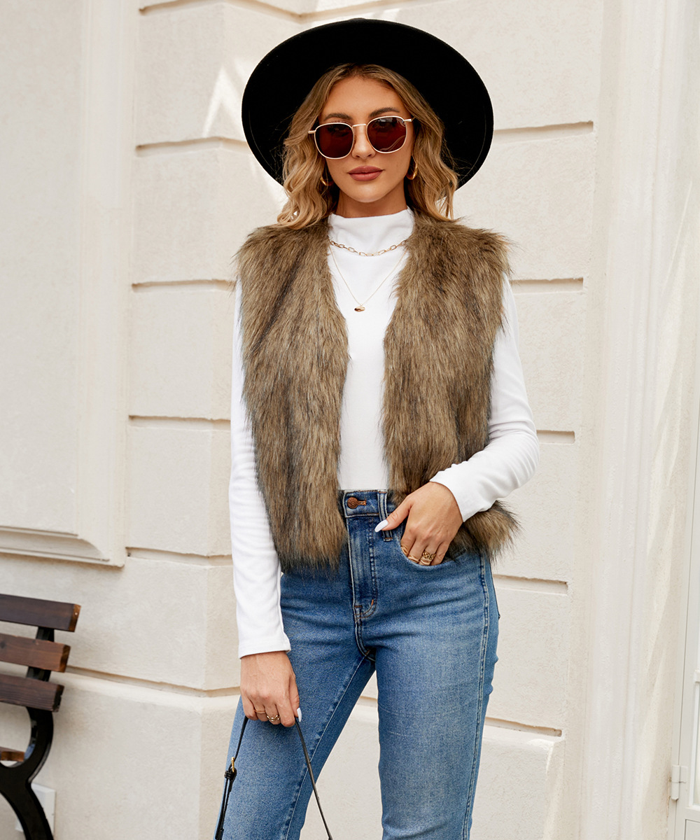 F0598 European and American Export V Neck Short Women's Imitation Fur Outwear Vest Top Artificial Fur Vest New Product